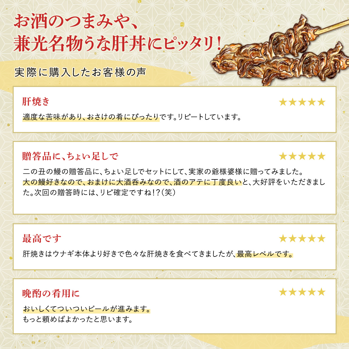 | 内容 | うなぎ肝串焼き×3本 タレ・山椒3袋付 |