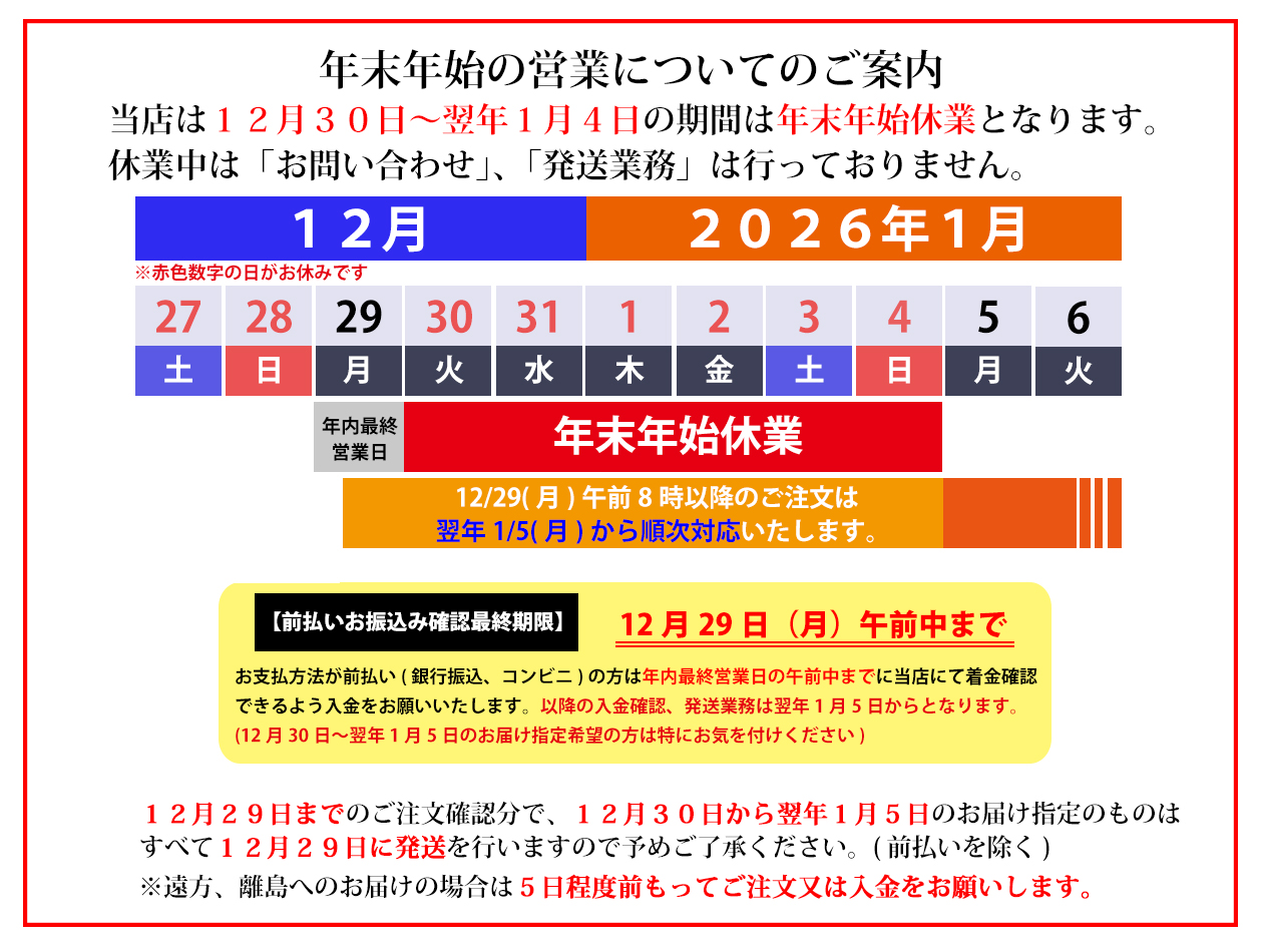 北海道・沖縄は追加送料500円が掛かります。